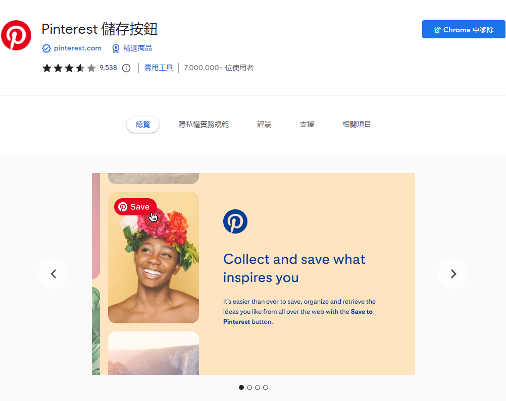 Pinterest 儲存按鈕 身為設計師使用Pinterest蒐集各式圖片資料已是家常便飯,此款插件可以讓你不需要延伸外部網站即可一鍵儲存!