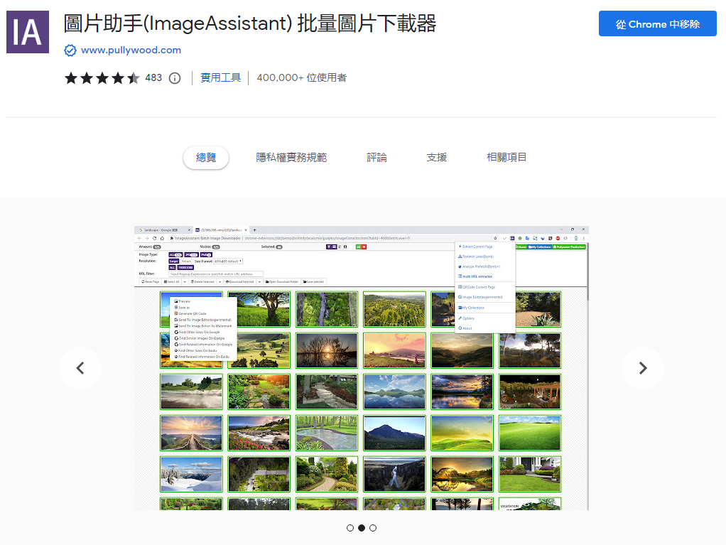圖片助手(ImageAssistant) 批量圖片下載器 這款插件可以幫助你一鍵下載瀏覽器看到的所有圖片,也可自行選取需要的圖片。對於懶得一張一張儲存圖片的人真是非常好的幫手!
