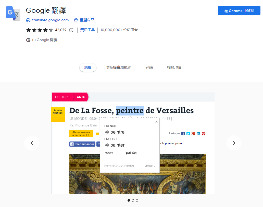 Google 翻譯 安裝此款插件後,當你在瀏覽網頁時,反白選取文字即會自動出現翻譯按鈕,下次當你想要翻譯時就不需再打開Google翻譯頁面!
