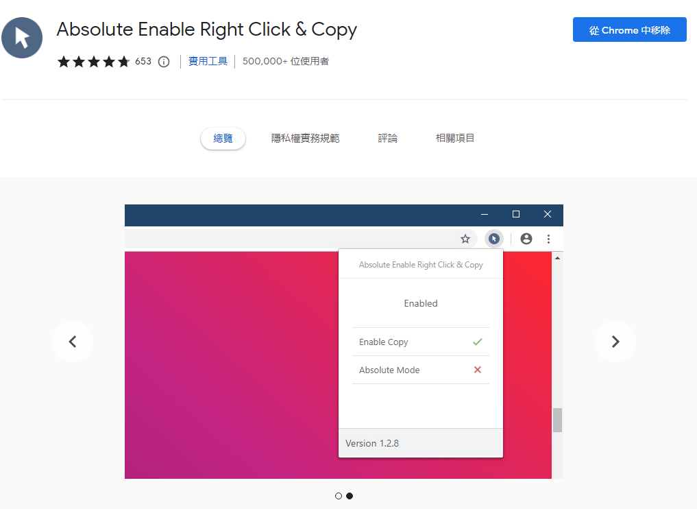 Absolute Enable Right Click & Copy 有時候當你看到文章或圖片想擷取參考時,卻遇到鎖右鍵的情形,這時使用這個工具就對了!